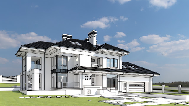 На основі складеного технічного та архітектурного завдання нами було запропоновано новий ескіз сучасного особняка. На цьому етапі він був прийнятий за основу.